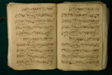Inscription 'In festo S. Augustini episcopi patris nostri' on top of fol. 043r. '1º ẽ e la mi re [primeiro tom em E-la-mi-re]', next to Tenor line on fol. 042v (later addition), indicating possible transposition in performance